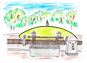 wznosi się nieśmiało kopiec upamiętniający poległych w wybuchu atomowym. Usypany został z ponad 70 tysięcy prochów nieznanych z nazwiska ofiar bądź takich, których prochów nie miał kto odebrać.