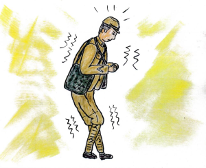 Przewrócony na brzuch przez silny poryw wiatru, dostrzegłem tuż przed sobą, jak drewniany dwupiętrowy budynek głównego gmachu naszej szkoły wali się z ogromnym hukiem. Zdążyłem zaledwie pomyśleć, „To już koniec ze mną!” i zemdlałem. Kiedy odzyskałem świadomość, otaczały mnie ciemności i wokół panowała kompletna cisza. Uświadomiłem sobie, że od pasa w dół byłem przywalony kolumnami budynku szkolnego. Dlatego nie mogłem się ruszać.